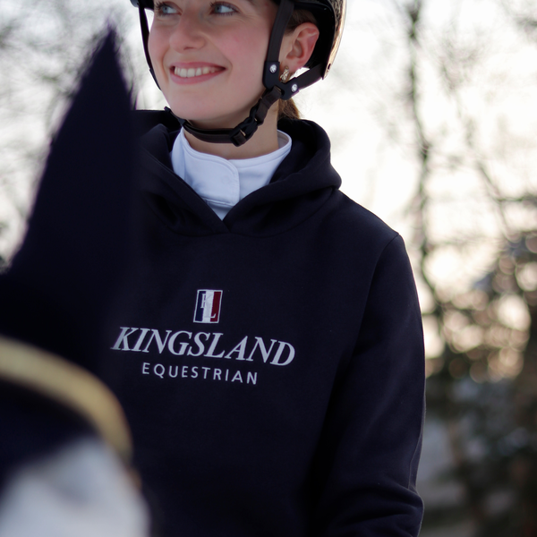 This Classic Hoodie easily becomes equestrians' favorite due to its relaxed, unisex fit and pleasantly soft sweatshirt fabric. The double-thickness hood provides extra warmth on windy days, while the ribbing on the cuff and hem helps secure heat inside. The cotton-polyester mix offers plenty of flexibility for riding or working around your horse, and the spacious kangaroo pocket provides ample storage space for your small essentials. The Kingsland house logo on the chest makes this hoodie's design stand out and truly recognizable.