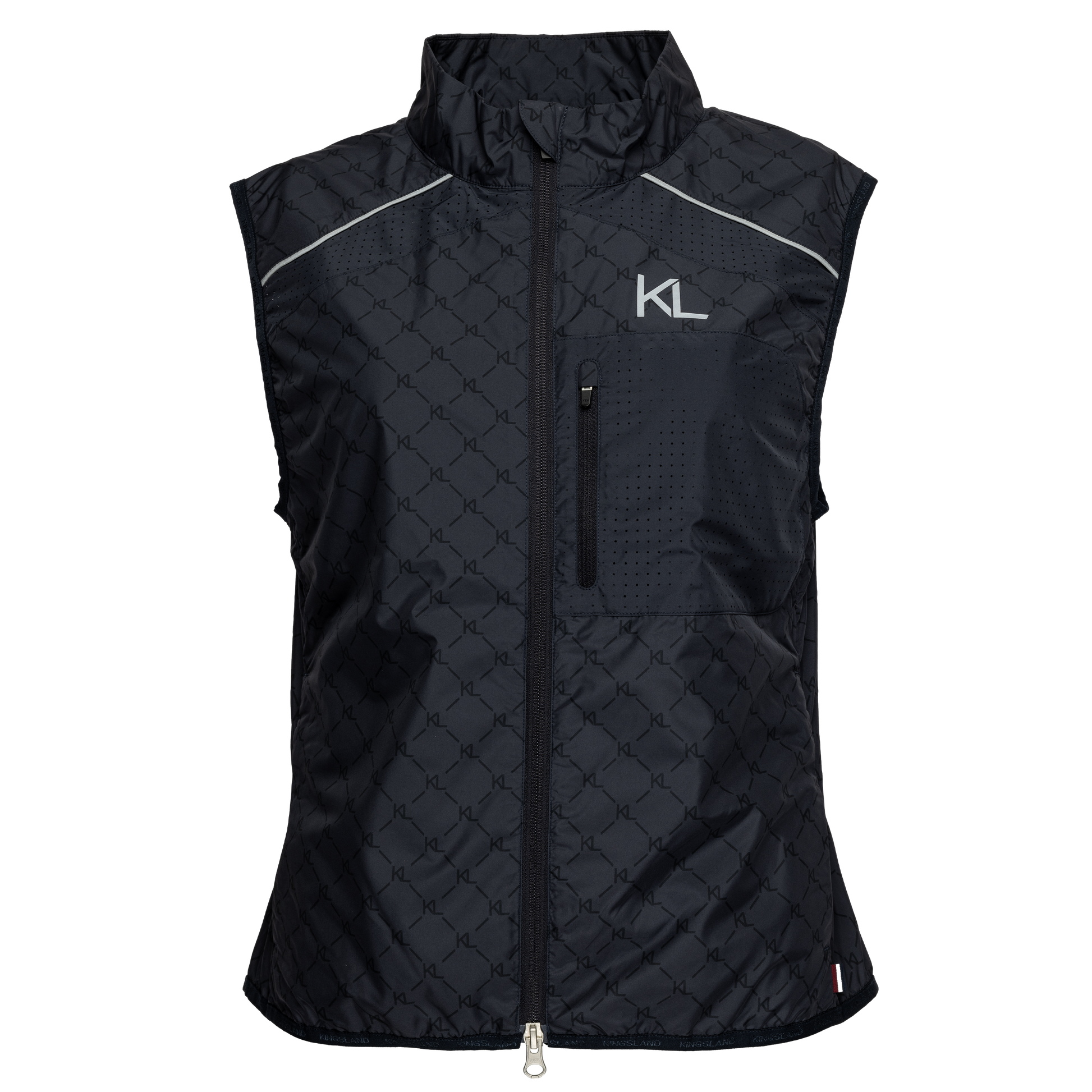 This versatile vest features the KL all-over print and reflective accents on the chest and back for enhanced visibility. Its laser-cut holes increase ventilation at the back. There are zippered hand pockets and a chest pocket for small essentials.